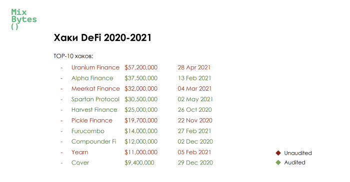 Стандарт безопасности в DeFi на данный момент — как минимум, 3 аудита от независимых команд, при этом репутация аудиторской фирмы является их главным конкурентным преимуществом.