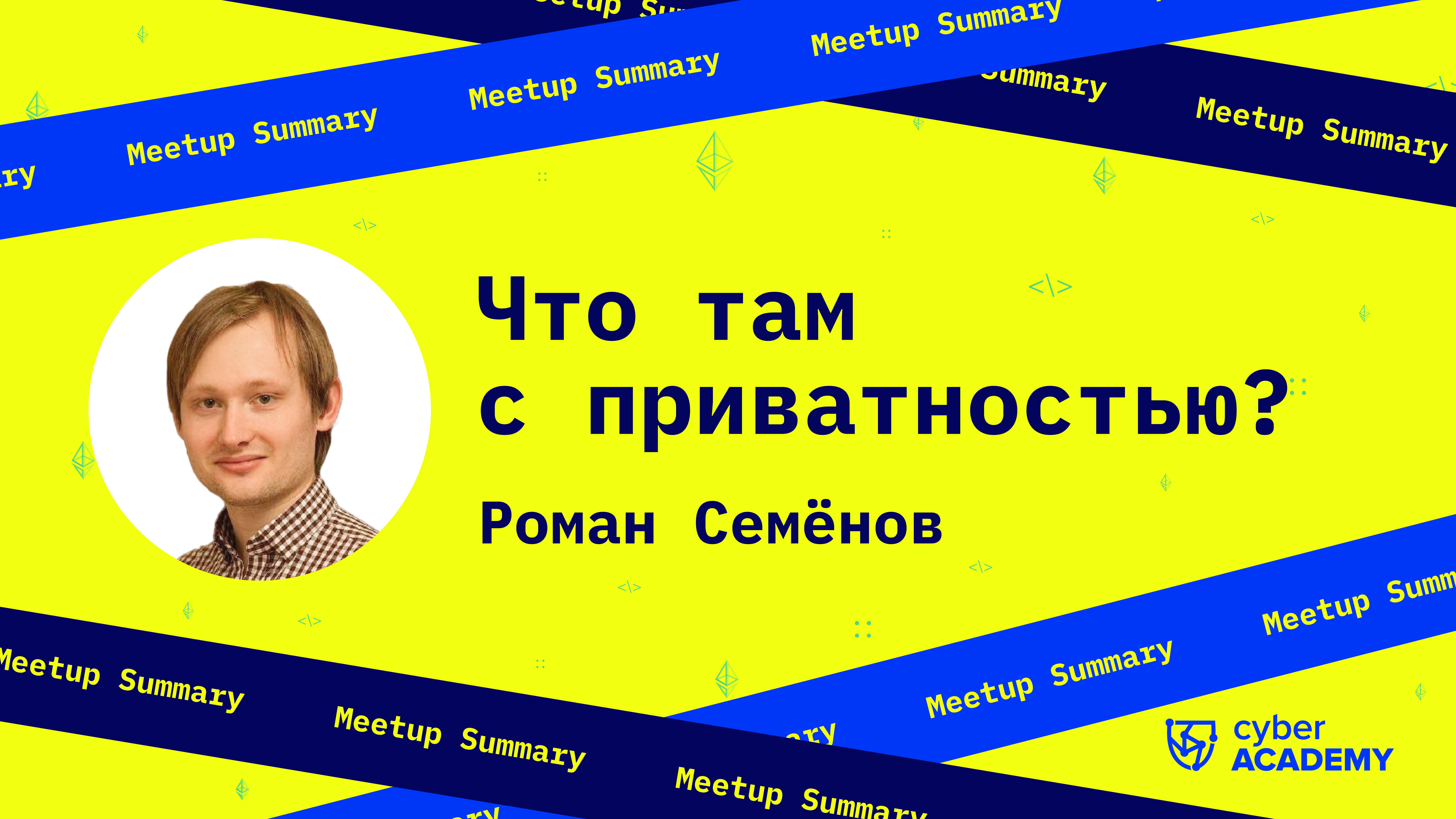 Роман Семенов , сооснователь Tornado Cash🌪, разобрал тему частных блокчейнов и шифрования данных на последнем митапе Cyber Academy 29 июля. Спикер рассказал, зачем вообще нужна приватность, и как она обеспечивается в проектах Monero, Zcach и CoinJoin. Собрали ключевые тезисы его доклада✨